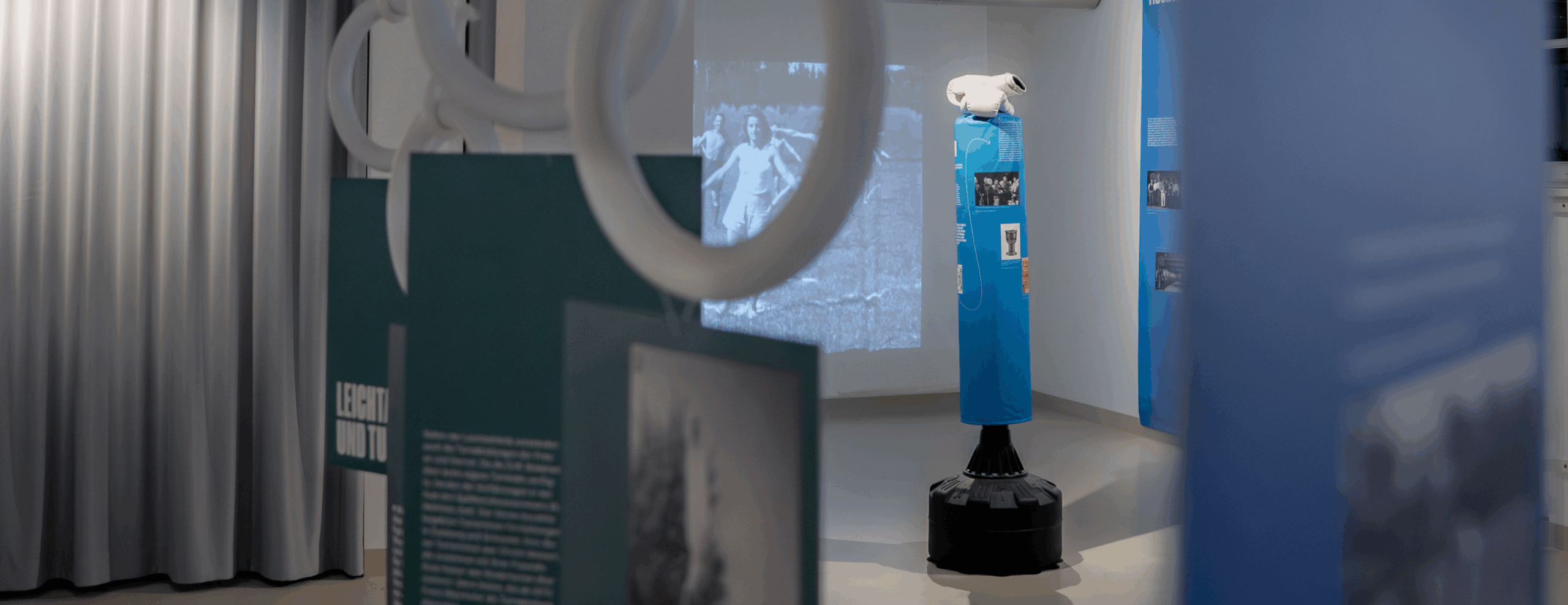 Neben den organisierten Leibesübungen nimmt die Ausstellung auch das inoffizielle, spontane Sporttreiben in den Blick. Sie befasst sich mit der Fußballweltmeisterschaft 1954, der Sportinfrastruktur und -ausrüstung sowie der Bedeutung von Körperlichkeit für die Holocaust-Überlebenden und Heimatvertriebenen.